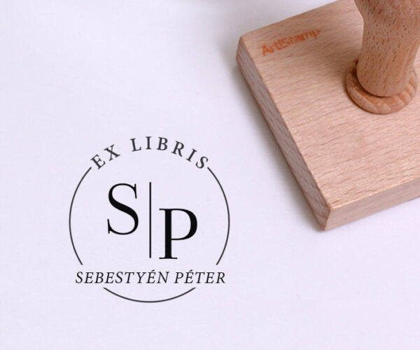 Könyvpecsét nyeles fabélyegzővel, tintapárna nélkül.