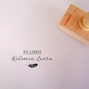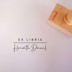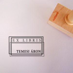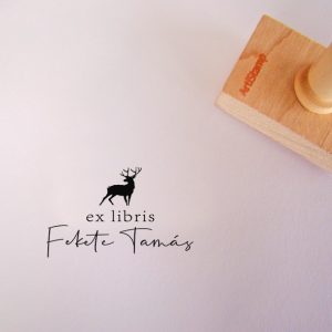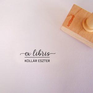 ![Ex libris pecsét, ágon ülő cinegét ábrázoló grafikával. Nyeles fa alapra készült, gumi lenyomattal, egyedileg megadott névvel készült.]()