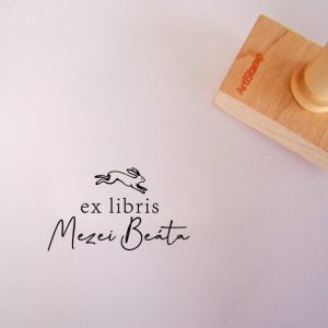 ![Ex libris pecsét, szitakötőt ábrázoló grafikával. Nyeles fa alapra készült, gumi lenyomattal, egyedileg megadott névvel készült.]()